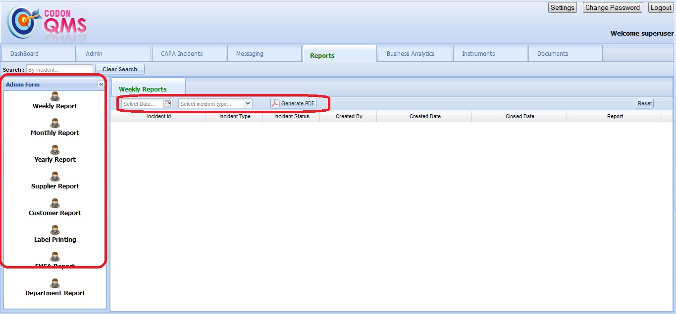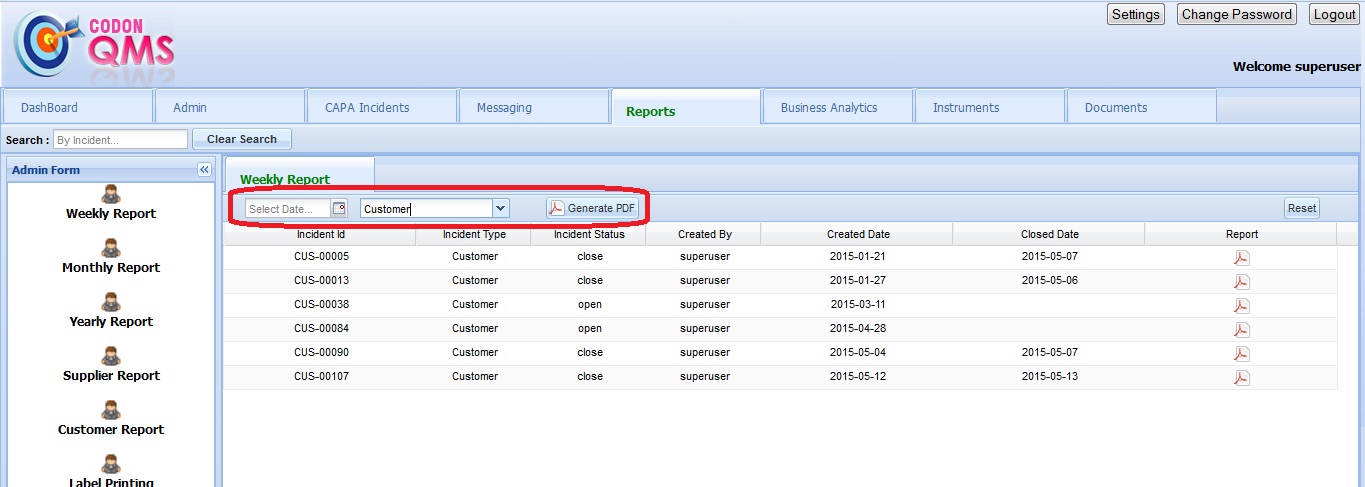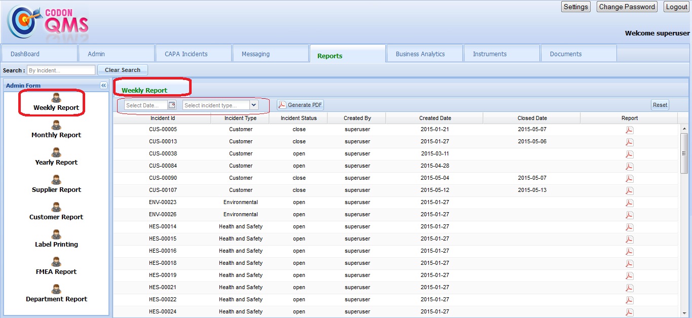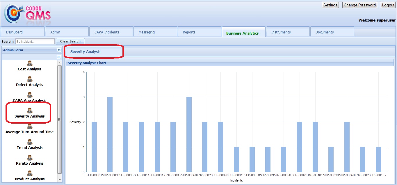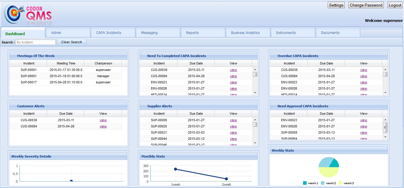 - Reporting and Analytics - Detail site reports for all tools with extensive category and query filter options. Analytics like CAPA Issue Analytic, Trending Analysis, Pereto Analysis, Cost Analysis, Management Analysis provided.