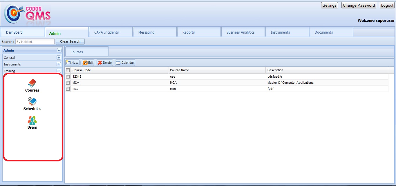 - Training Records Management - Ensures employee job quality and compliance by managing personnel skill sets and certifications while streamlining course management activities. Users can track and maintain qualifications for all employees. CodonQMS will simplify training processes and alert management and employees when required trainings are coming due.